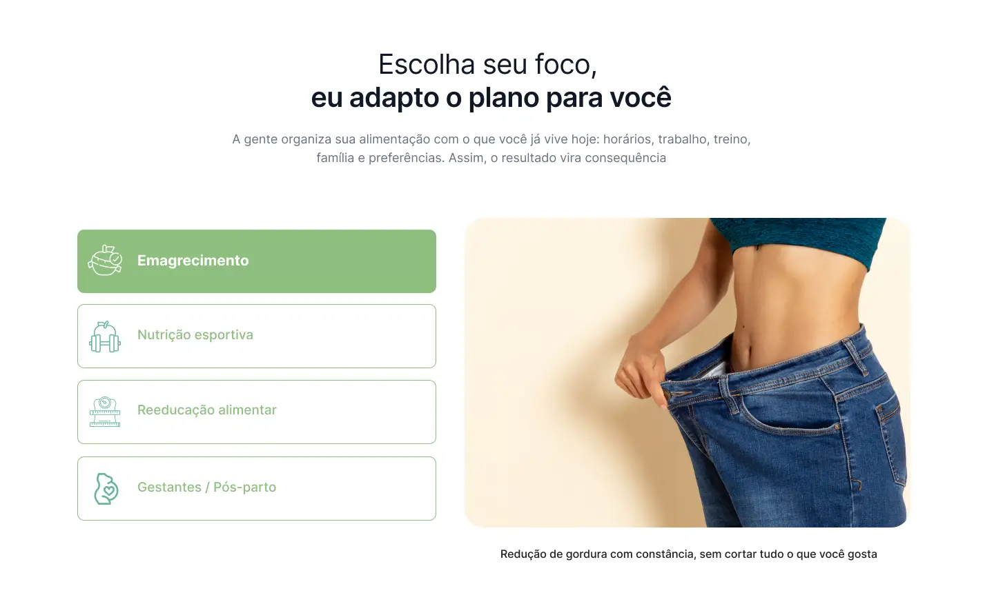 Atendimento nutricional personalizado, com foco na sua rotina e nos seus objetivos. Planos alimentares práticos, sem extremismos e com autonomia. Resultados sustentáveis com equilíbrio, constância e saúde.