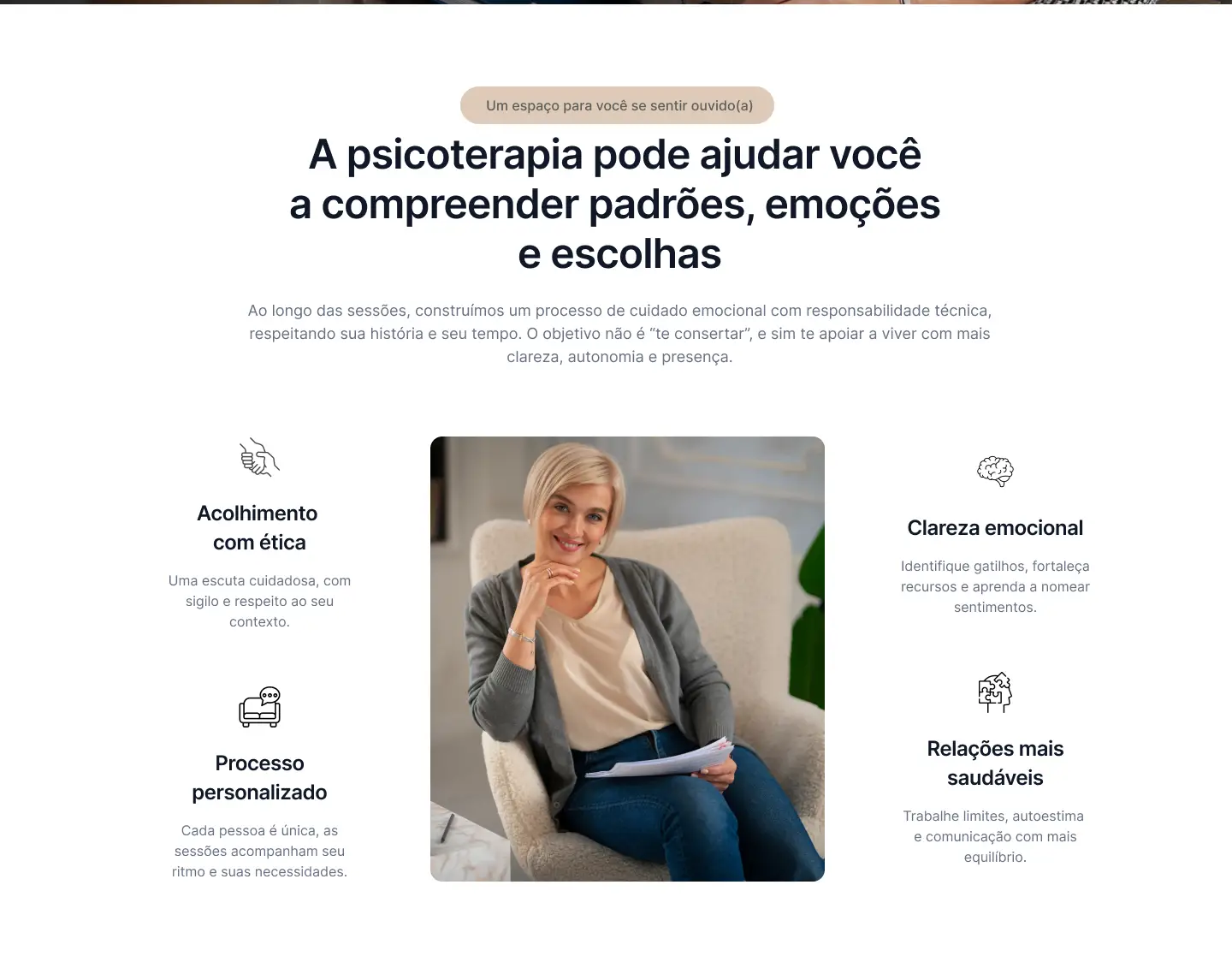 Site acolhedor e confiável para psicologia, com foco em agendamento.